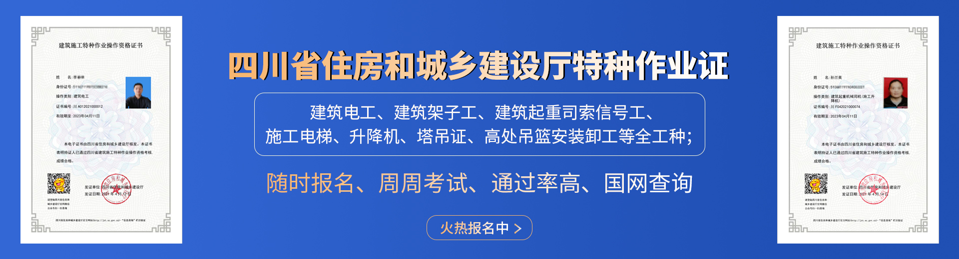 電工證,焊工證,登高架設(shè)證,高處安裝維護(hù)拆除證,電力電纜證,繼電保護(hù)證,電氣實(shí)驗(yàn)證,防爆電器作業(yè)證,制冷工證,主要負(fù)責(zé)人證,安全管理人員證